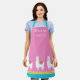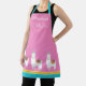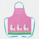 This fun apron features adorable white llamas dressed in pink, turquoise and golden yellow tassels and pom-poms on a background of solid pink. Personalize the top with your choice of name and special text.