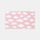 Whimsical abstract pink and white small clouds print illustration design. Simple minimalist clouds themed nursery rug. Cumulus altocumulus fluffy white and baby pastel pink sky clouds. Artsy clouds illustration for kids, clouds nursery decor. Clouds pattern in pastel pink color.