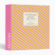 A stylish personalized recipe binder with a cute pink and yellow plaid pattern.