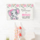 Cute Pink Baby Elephant and Roses Baby Shower Banner