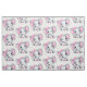 Fabric with a cute pink elephant watercolor illustration. She has cute pink and white polka dot ears and a pretty pink ribbon bow on top of her head.