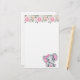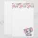 Stationery paper with a cute pink elephant watercolor illustration. She has cute pink and white polka dot ears and a pretty pink ribbon bow on top of her head. The top is decorated with a beautiful rose bouquet.