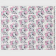 Wrapping paper with a cute pink elephant watercolor illustration. She has cute pink and white polka dot ears and a pretty pink ribbon bow on top of her head.