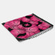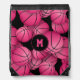This fun basketball themed drawstring backpack features a pattern of varied size pink basketballs turned every which way on a customizable black background - personalize the athlete's monogram - by katz_d_zynes