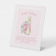 Cute Pink Beatrix Potter Rabbit Floral Baby Shower Pedestal Sign