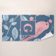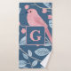 Cute pink bird blue gray personalized monogram bath towel set