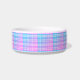 Cute Pink Blue Plaid Personalized Pet Bowl