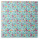 Cute Pink & Blue Small Floral Mint Design Ceramic Tile