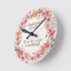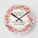 Cute Pink, Blush and Peach Floral Name and Saying Round Clock