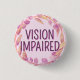 Announce your special needs with this cute hard-of-hearing badge by JessicaAmber! Features the slogan 'Vision Impaired', surrounded by a wreath of pink leaves, on a pastel pink background. You can edit the text as needed. A great gift for your family member who is partially or fully blind. ⭐ For more useful impairment accessories, visit my store Zazzle.com/Elder_Vitality ⭐ For custom orders, message me on Zazzle