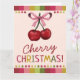 Cute Pink Bow and Sweet Red Cherry Christmas Card