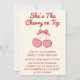 Cute Pink Bow Cherry on Top First Birthday Invitation