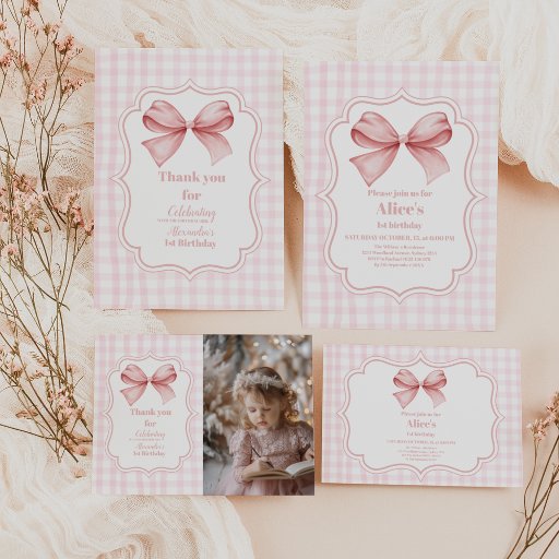 Cute Pink Bow Coquette 1st Birthday Invitation