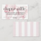 For a fun baby shower game, add this diaper raffle enclosure card with your baby shower invitations. Each guest brings a pack of diapers to the shower for a chance to win a prize. This feminine design has a cute pink bow tilted to one side with a simple pink and white awning stripe background on the reverse side.