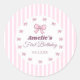 Cute Pink Bow First Birthday Classic Round Sticker