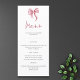 Elevate your quinceañera celebration with our charming pink bow menu cards, designed to add a touch of elegance to your table settings. Featuring a delightful pink bow at the top, these cards provide all the essential information for your guests, ensuring a seamless dining experience. Perfectly crafted to complement your theme, these menu cards are not just functional but also a beautiful keepsake from your special day. Illustrated and designed by Patricia Alvarez.