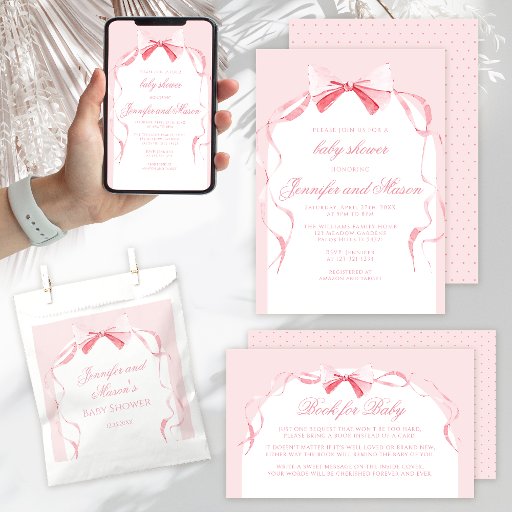 Cute pink bow ribbon boho arch baby girl showerDesigned by Ramune Freze