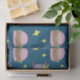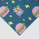 Now serving up adorable burgers and fries with this playful design! The Pink Burger and Fries Fast Food Pattern Tissue Paper will help you celebrate a birthday with a cheeseburger-themed party that is far from boring. Ordinary backyard bbq party favors and gifts will get a charming upgrade with this tissue paper. The pattern design features a burger with a pretty pink bun alongside french fries. The fries are dripping ketchup and nestled inside a purple with pink heart fry container. A dark blue background and yellow stars make it pop.