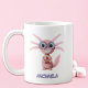 Cute and fun personalized mug with an illustration of a pink axolotl with glasses. Funny cartoon axolotl that will be the delight of the axolotl lover. Illustrated and designed by Patricia Alvarez.