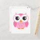Cute pink cartoon baby owl postcard