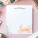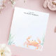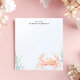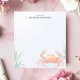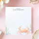 Bring a touch of seaside charm to your notes with this adorable, personalized notepad. A cute, pink-hued crab illustration scuttles across the bottom, accompanied by subtle seaweed accents. The clean, minimalist design keeps the focus on the charming crustacean. Add your custom text to create a unique and fun notepad. Perfect for beach lovers, to-do lists, or quick reminders.