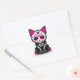 Cute Pink Day of the Dead Kitten Cat, white Classic Round Sticker