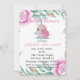 Cute Pink Dinosaur and Peony Baby Shower Invites