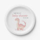 Cute Pink Dinosaur Girls Baby Shower Paper Plates