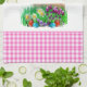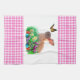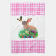 Decorate your kitchen for Easter and the spring season with this darling towel. This pink and white gingham towel features a darling Easter Rabbit collage with colored eggs, green grass, and tulip flowers. The bunny design in the center is one of my collages, each element was set by hand before being grouped. This kitchen towel has a matching tablecloth and napkin view them in my Easter collection.