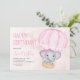 Cute Pink Elephant Balloon 1st Birthday Invitation