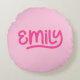 Cute Pink Emily Handwriting Typography Round Pillow