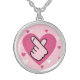 Cute Pink Finger Heart K-pop Love BlackPink Silver Plated Necklace