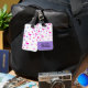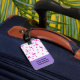 This cute pink flamingo design custom luggage tag is available to personalize with your name and contact information.