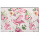 Cute pink exotic flamingos and flowers pattern on pale pink background