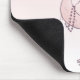 Mousepad with a whimsical hand drawn pink flamingo.