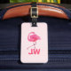 Cute Pink Flamingo On Striped Background Luggage Tag