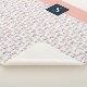 Personalized monogrammed sherpa blanket featuring a cute pink tropical exotic flamingo summer pattern design and a personalized monogram on a pink border at the top.