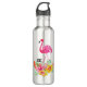 Cute Pink Flamingo & Tropical Flowers Bouquet Water Bottle