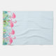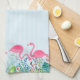 Cute pink flamingos tropical flowers border kitchen towel