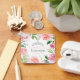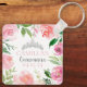 This chic, custom blush pink floral Quinceañera party favor keychain features pretty watercolor flowers and beautiful green botanical leaves around the sparkly silver tiara. Lovely feminine and girly gift for your teen girl's 15th birthday. Flirty and feminine peonies create a cute border around the elegant name and date.