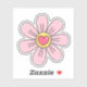 Sticker featuring a cartoon illustration of a pretty little pink flower with a pink heart in the center.