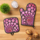 Cute Pink Flowers Pattern Oven Mitt & Pot Holder Set