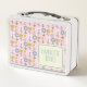 Cute Pink Garden Flowers Personalized Name Metal Lunch Box