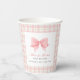 Cute Pink Gingham Plaid Bow Girl Baby Shower Paper Cups