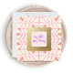 Beautiful leaf-inspired pattern with sprinkled with orange berries berries ontop of pink background - gold frame plaque with the words "a gift for you" in a retro style typography