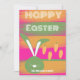 Cute Pink Green Happy Easter Bunny And Carrots Holiday Card