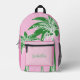 Cute Pink Green Preppy Palm Tree Monogram Name Printed Backpack
