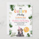Cute Pink Hat Our Cheeky Monkey Birthday Invitation