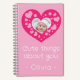 A notebook with a pink heart shaped photo frame for adding your personal photo. A great keepsake for writing down the cute things about your daughter.