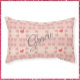 Sweet little pink doggie bed covered in hearts which shows how much you love your pet! Script lettering in dark grey. Personalize for your pet's name.